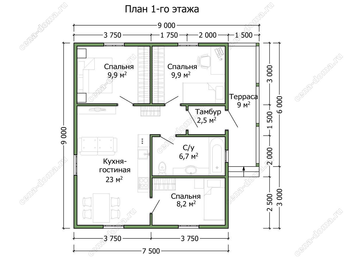 - 36 450₽ 72 900₽ - первый этаж
